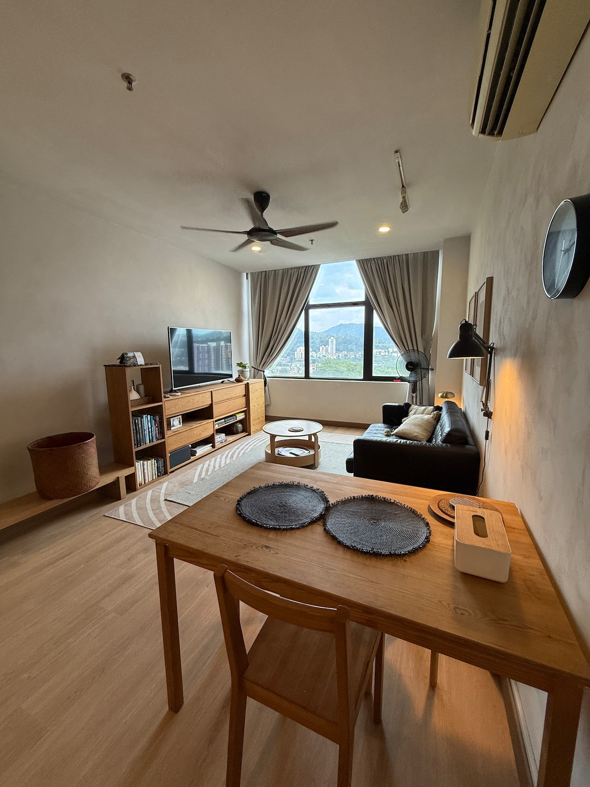 Enjoy Batu Caves views and lush greenery from this cozy, nature-inspired home — just 5 mins to Batu Caves and 15 mins to KLCC. Walk to the KTM station, or catch the feeder bus to the MRT nearby. Relax with coffee on the balcony, explore nearby lakeside trails, and return to a peaceful retreat with playful panda touches. Free parking included.