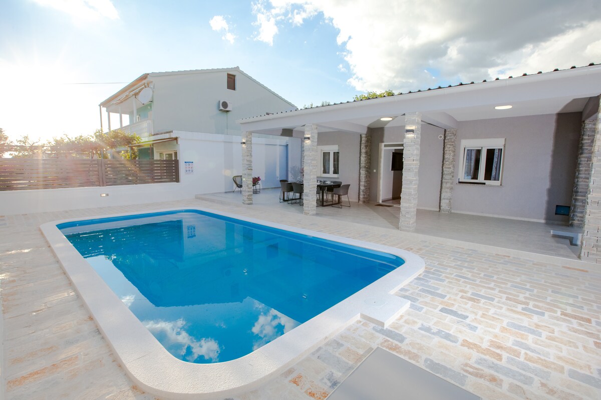 Casa AL ESTE is not just another villa in Croatia..it's your unique summer escape in one of the most beautiful bays in Petrčane Zadar..our goal was to create a place for YOU to be HAPPY from the moment you arrive..it's a dream & for sure a destination you don't want to leave..PURE JOY..200m2 highest level of excellence, 40m2 pool, private fitness & yoga area, sauna, 3 bedrooms, 1 huge comfy couchbed, 3 bathrooms, 5 parking spots & lots of other luxury details for up to 5 persons! Just BOOK it!!