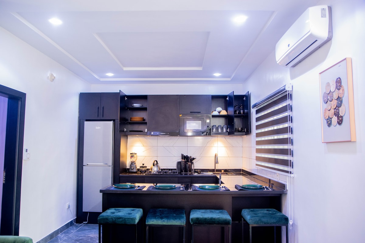 2 bedroom apartment living room, shower in each bedroom, guest toilet, kitchen. It seduces with its luxury business and vacation approach. It is in Cotonou Akpakpa Cinéma Concorde not far from the new asphalt, 15 minutes from the airport, 5 minutes from the beach, 5 minutes from the large Tokpa market. Relax in this air-conditioned, quiet and stylish accommodation. 24-hour internet access. You have a personal card meter that can be recharged at your convenience. Fees