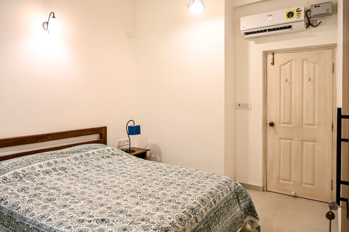 Welcome to Our Home! (Upgraded + photos updated) Step into luxury just a 2-min walk from the beach, offering breathtaking sea views. You can enjoy the calming sound of waves. Dine at shacks or renowned restaurants like Martin's Corner. Fully furnished rooms, well-equipped kitchen, and high-speed internet. Community swimming pool in a high-end gated community. Friendly caretaker is here to assist you