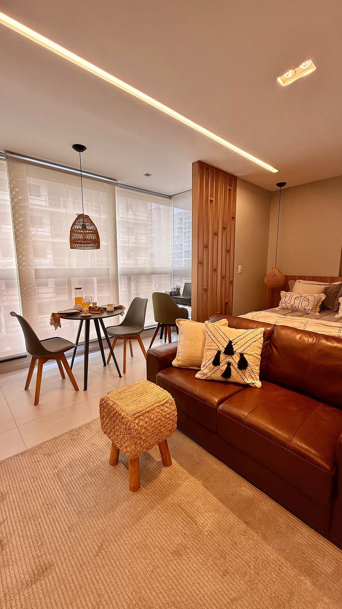 Located in Jardim Camburi, only 7 km from Camburi Beach and 4 km from the airport, this 38.94 m² studio offers comfort and technology. The space has queen bed, high-quality bed and bath linen, dishwasher, fridge, cellar, smart TV, Alexa, internet and air conditioning. The enclosed balcony provides extra space to relax. The building has a shared laundry room (OMO, pay per use), a 24-hour mini market, a modern gym, a ballroom and a meeting room.