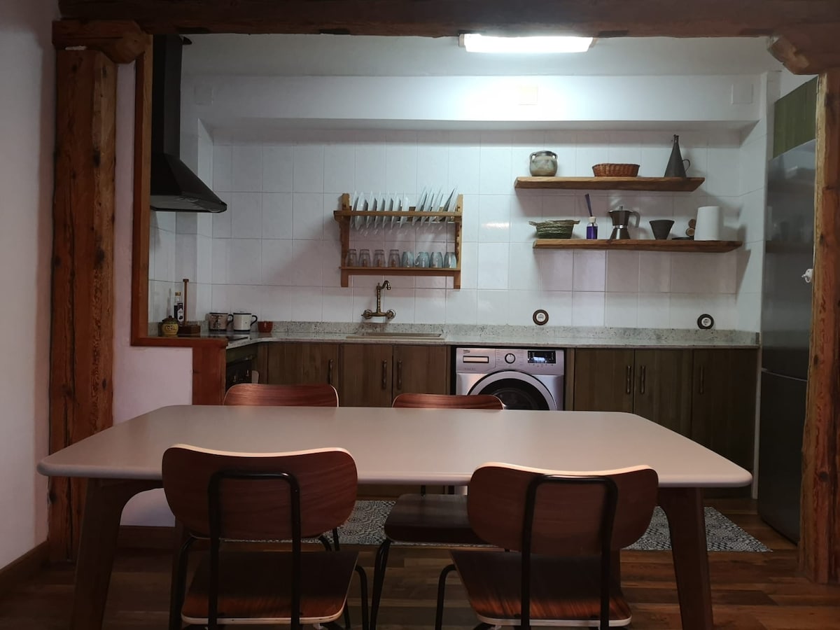 Rural apartment, located in the center of the village. It consists of 2 fully decorated and equipped bedrooms, with restored antique wood; one of them with a double bed and another with two single beds, both exterior with views of the village and the mountains. The kitchen is equipped with induction, washing machine, refrigerator... The living room is prepared to look for maximum comfort. The house has a stove that distributes heat throughout the house.