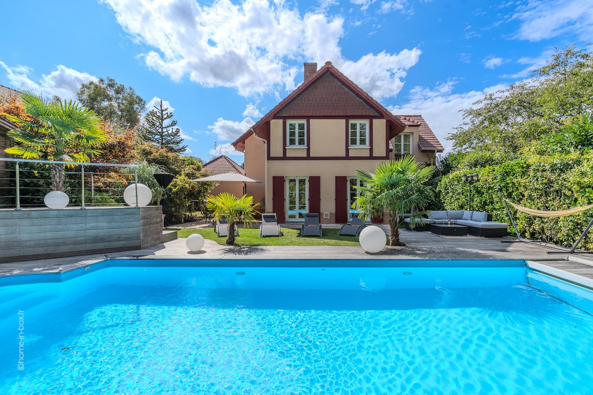 🏡 Villa Cottage – Luxe, nature & piscine privée près de Disneyland Paris Élégante villa pour 8 personnes : 4 chambres avec 4 salles de bains attenantes. Vous disposez d'une piscine chauffée, jardin tropical et décoration raffinée. À seulement 10 min de Disneyland Paris et 7 min de La Vallée Village. Idéale pour les familles et amis en quête de détente et confort