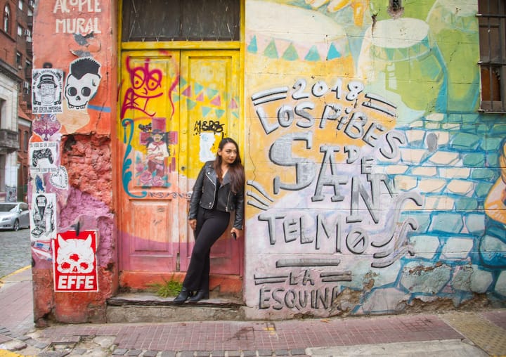 Tour of the historic center of Buenos Aires. Photos in San Telmo. One hour in duration, 35 edited photos are delivered 48 hours after the session.
