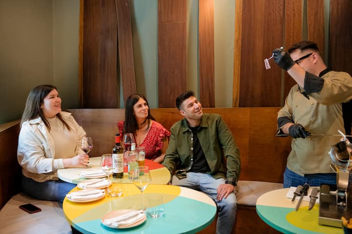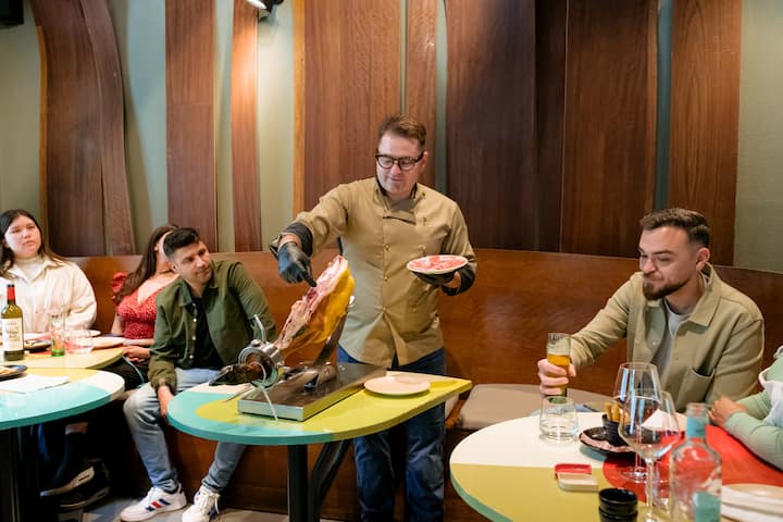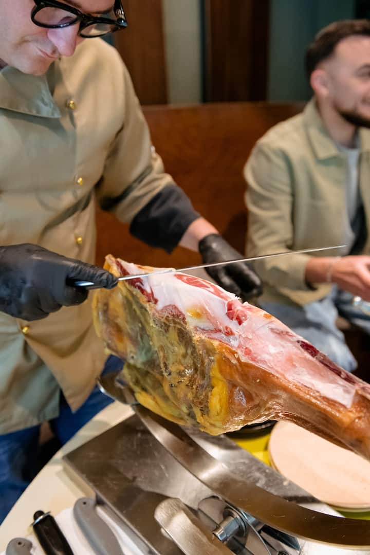 100% Iberian acorn-fed ham shoulder, the jewel of Spanish gastronomy (Black Label). DO Jabugo-Huelva. Professional cut live.