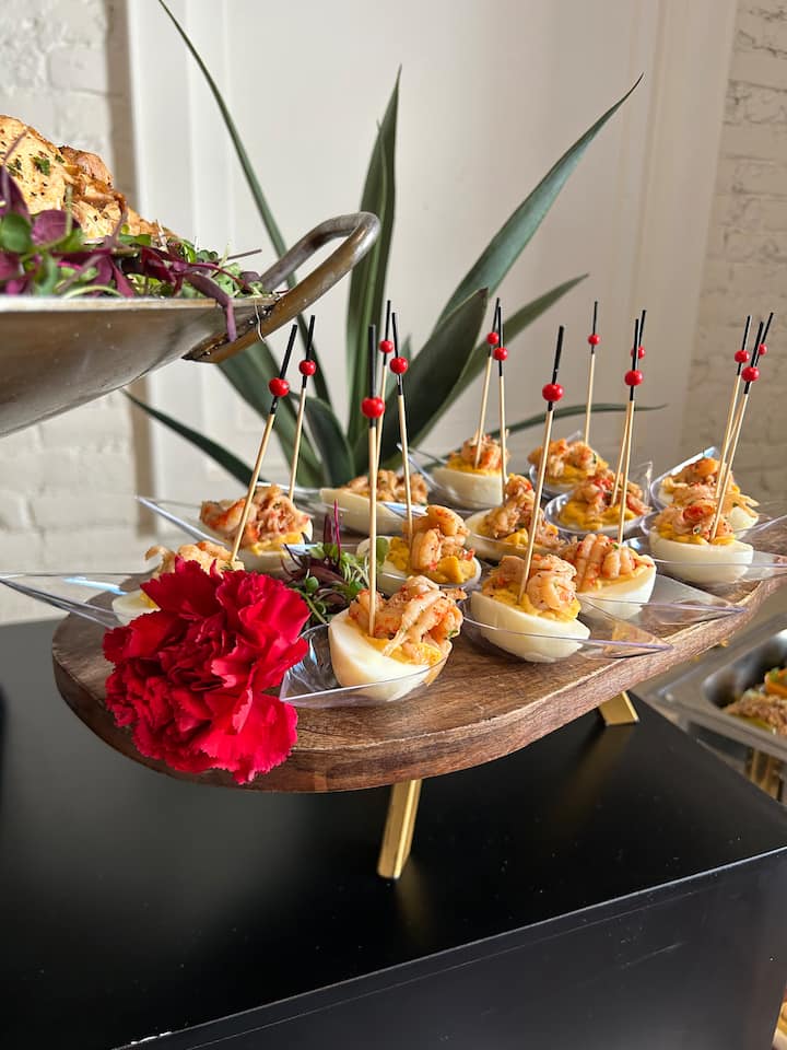 A refined selection of elegant bites crafted to impress. Guests enjoy options like seared ahi tuna on cucumber rounds, mini crab cakes with lemon herb aioli, steak crostini with horseradish cream, and caprese skewers drizzled with balsamic glaze. Each appetizer is thoughtfully curated to deliver bold flavor, luxury presentation, and a memorable first impression.