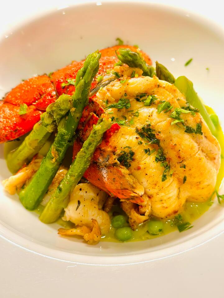 A luxurious four-course meal featuring two appetizers, a signature seafood main, and a decadent dessert. Perfect for guests looking to celebrate or truly impress, this experience brings fine-dining flavors to your private table with sophistication and heart.