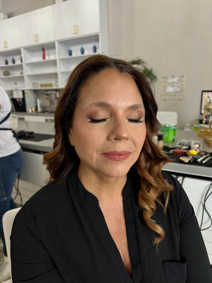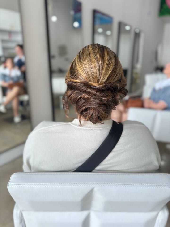 Enjoy a blowout and style with optional soft curls for added volume and movement. The look is finished with full glam makeup and lashes for a polished, camera-ready result.
