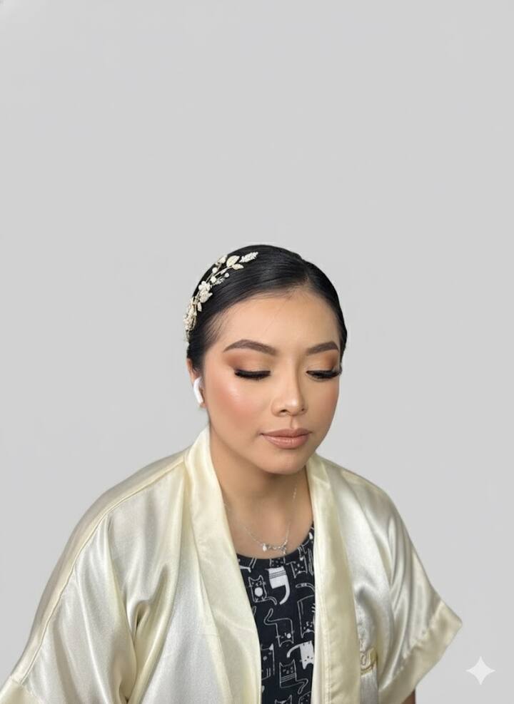 Enjoy this wedding option, which includes image consulting, hyaluronic acid mask, collagen patches, lip exfoliation and hydration, eyebrow design, high-end three-dimensional makeup, false eyelashes and neckline lighting. Your mission is to achieve a duration of 24 hours. In addition, a high hairstyle and the placement of a veil, headdress or mantilla is done.