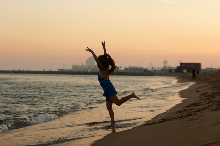 Beautiful sunset photo shoot on the beach in Barcelona. Get some beautiful photos for your holiday or portfolio. I can use flash or natural lighting to make some incredible photos.