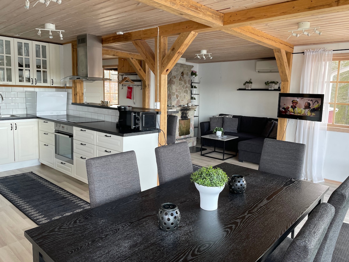 Welcome to our charming cottage, renovated in 2019, with a high standard in a scenic rural location. It is close to Bullerbyn, Katthult and other places that appear in Astrid Lindgren's books. The accommodation is 90 sqm and sleeps 6+2 guests. Enjoy fast fiber internet with Wi-Fi. Explore Astrid Lindgren's World, just 15 km away, and create memories for both children and adults. During your stay, you can charge your car on site for a fee.