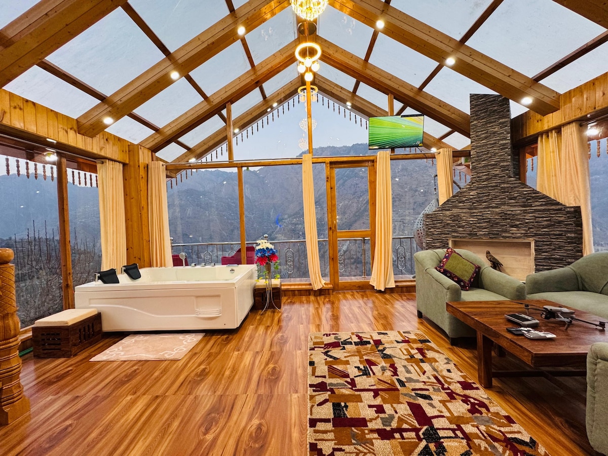 Have fun with the whole family at this stylish place. You will have spacious and Luxury Duplex chalet suitable for one couple or a family of four guests. ★ Master bedroom & attic ★ Wooden & Stone Architecture ★ Panoramic Valley view ★ Nearby Paragliding site ★ Bathtub ★ Power backup ★ WiFi ★ Indoor Fireplace ★ in-house food service ★ Garden & Bonfire area Please note : - Breakfast, Meals, Room heaters, Firewood, & all other services are exclusive of stay price here