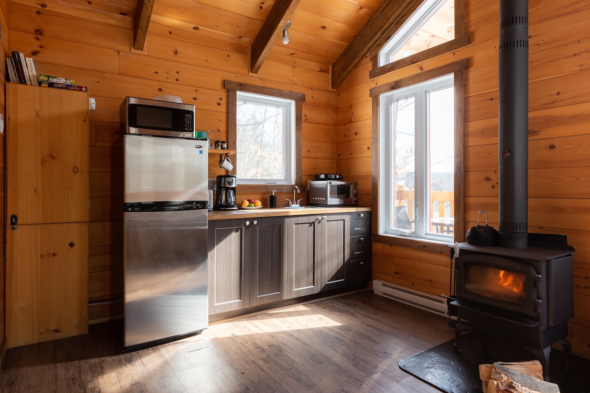 **WARNING. Not suited for families. Please read the description before making a request** Small open-plan cabine, surrounded by trees, ideal for recharging your batteries in the countryside or focusing on an art or writing project, and for working remote. Minutes from Vallée du Parc, Parc Nationale de la Mauricie, Gold Club Le Laurentide, Le Duché de Bicolline. Near Saint-Tite, downtown Shawinigan and the famous Trou du Diable. Nº d'établissement CITQ: 302795