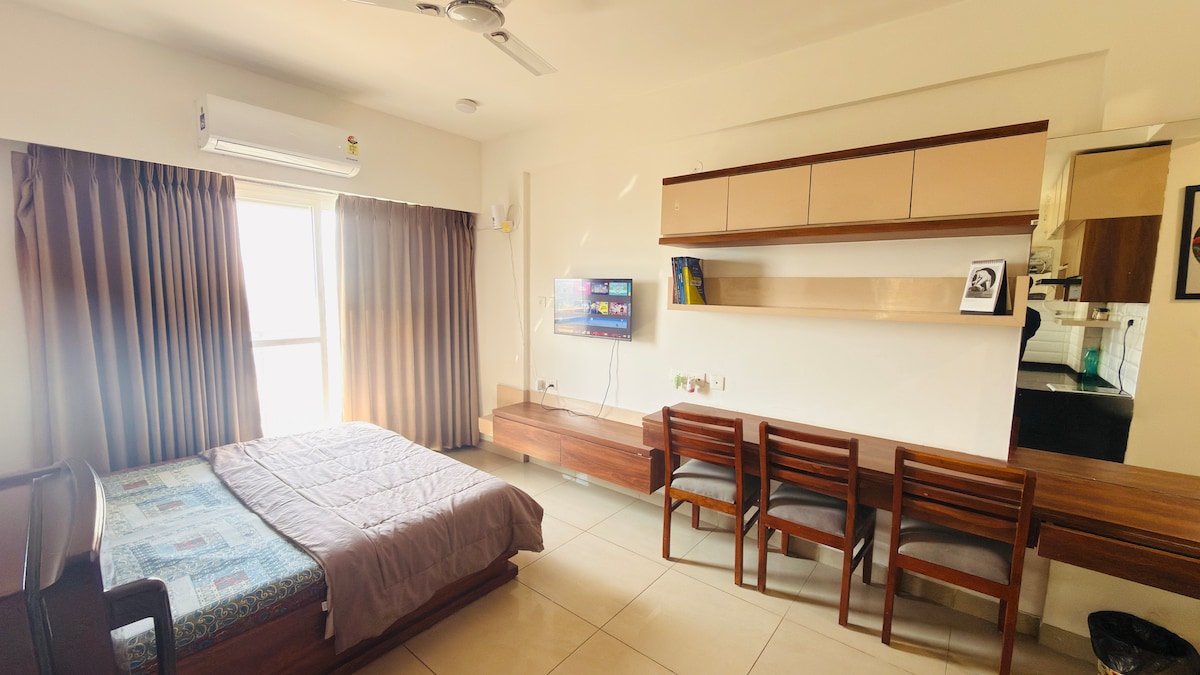 Welcome to Minimint – a stylish studio in a prime central location, perfect for exploring the city. Enjoy stunning sunset views from the standing balcony, relax on the comfy sofa-cum-bed, and stream your favorites on the smart TV with fast Wi-Fi. The modern kitchenette is fully equipped for small meals. Ideal for couples/solos - this compact space is filled with natural light and designed for both work and rest. Experience the best of city living—comfort, convenience, and charm—all in one place