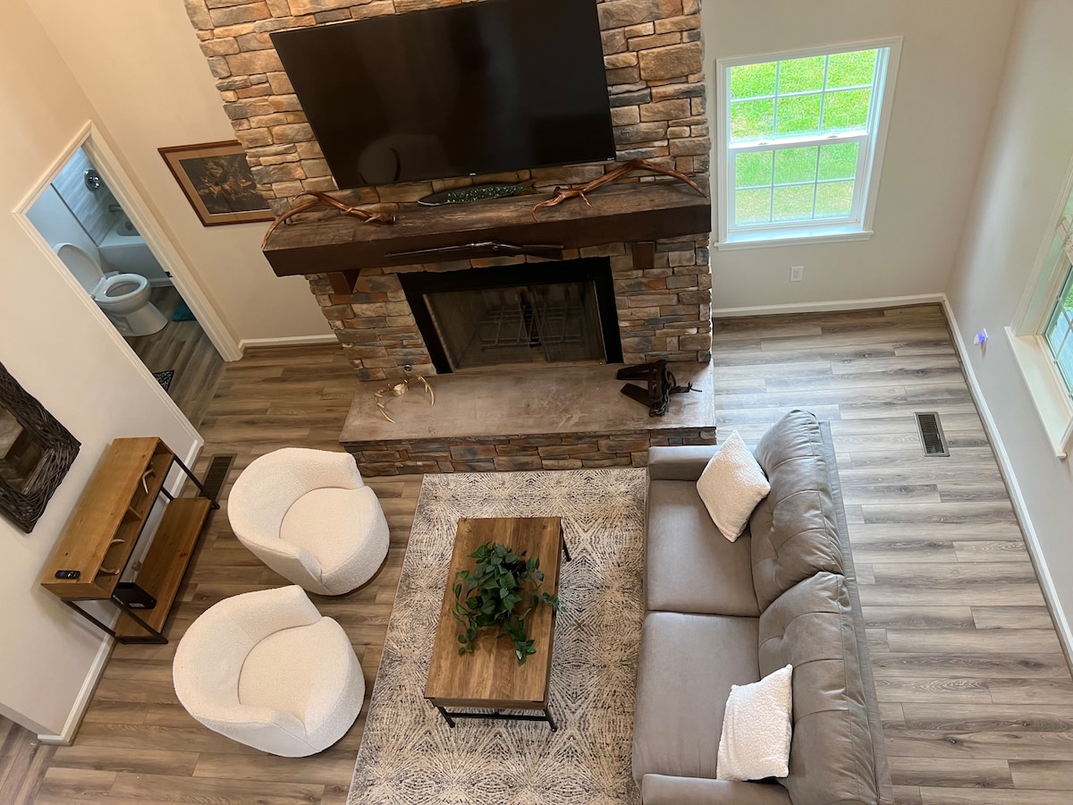 Silence and solitude in beautiful NW Pennsylvania. This lodge offers a breathtaking view off the back deck, 600’ above the Allegheny River. A beautiful interior with a rustic feel. Plenty of wood work and a gorgeous stone fireplace in the center of the living room. The house is located only 2m from a boat launch on the Allegheny River, yet just 10m from WalMart. Come enjoy a peaceful stay in the great outdoors! Hiking, fishing, bike riding and more! If you're looking for serenity, this is it!