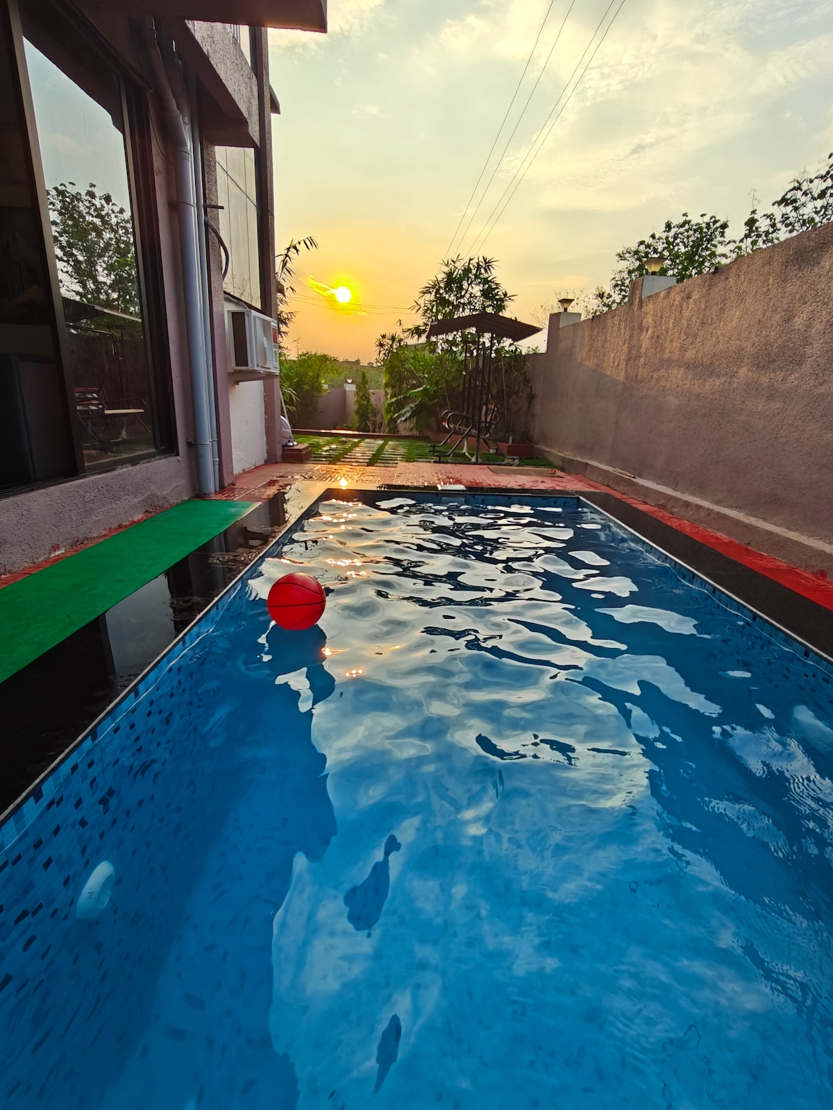 This beautifully maintained 3BHK farmhouse offers the perfect blend of luxury. Nestled amidst greenery, it boasts large AC bedrooms, a fully equipped kitchen, ample natural light, and an open living area ideal for families or groups.Whether you're working remotely or simply need a weekend escape, this farmhouse provides a serene environment with all amenities. Enjoy privacy, space, bird chirping, fantastic night under the stars and the charm of countryside living just a short drive from the city