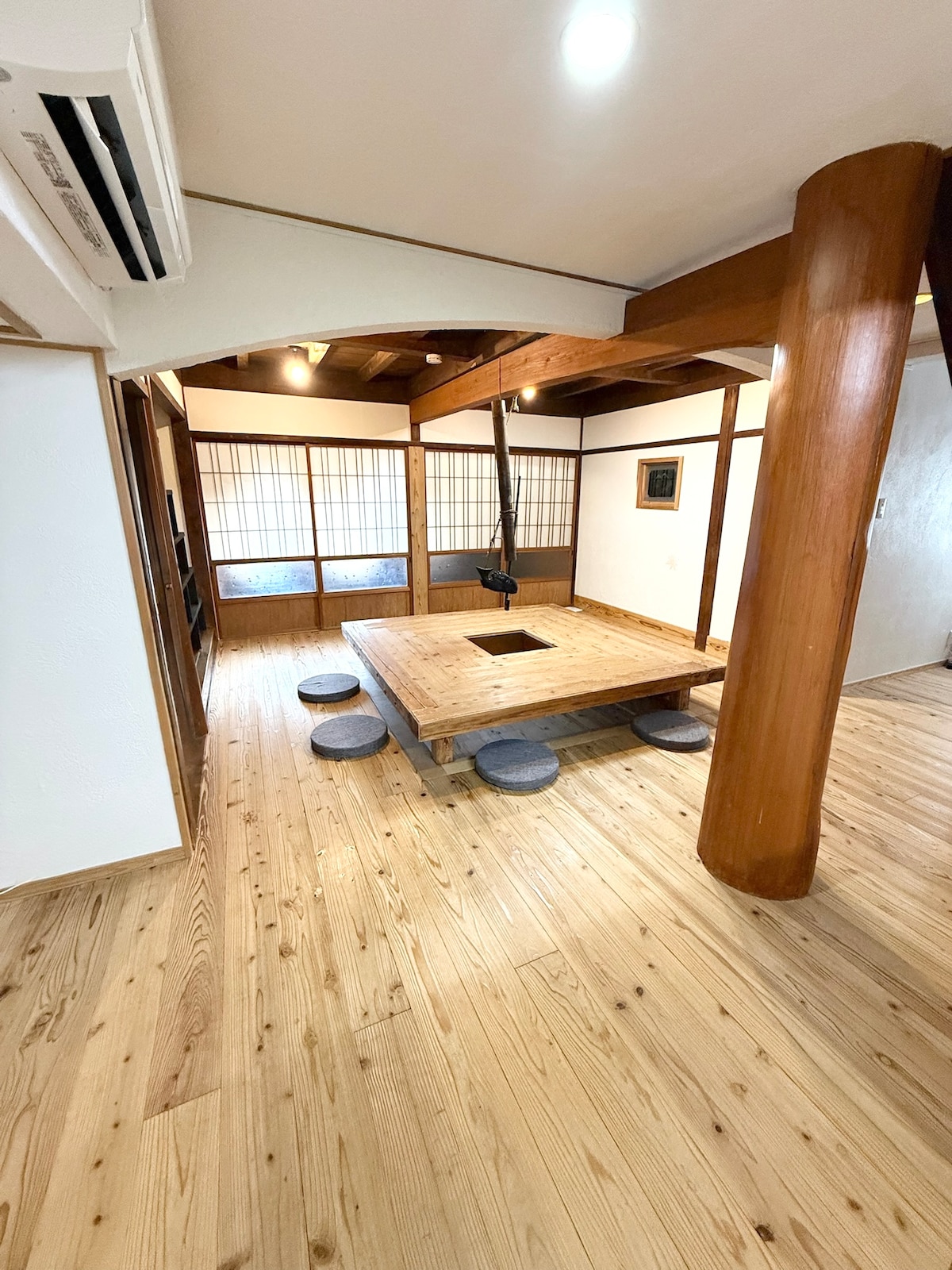 Enjoy a 100% private onsen in a traditional Japanese house. Quiet location steps from shops and restaurants. Perfect for families and groups with 6 beds + 5 futons (up to 11 guests), a large sunken kotatsu, projector, and audio system. Reliable high-speed Wi-Fi and a spacious layout make it comfortable for long stays and remote work. Free parking available. Please note: Guest count reductions allowed until 7 days before check-in. Insects may appear due to countryside location.