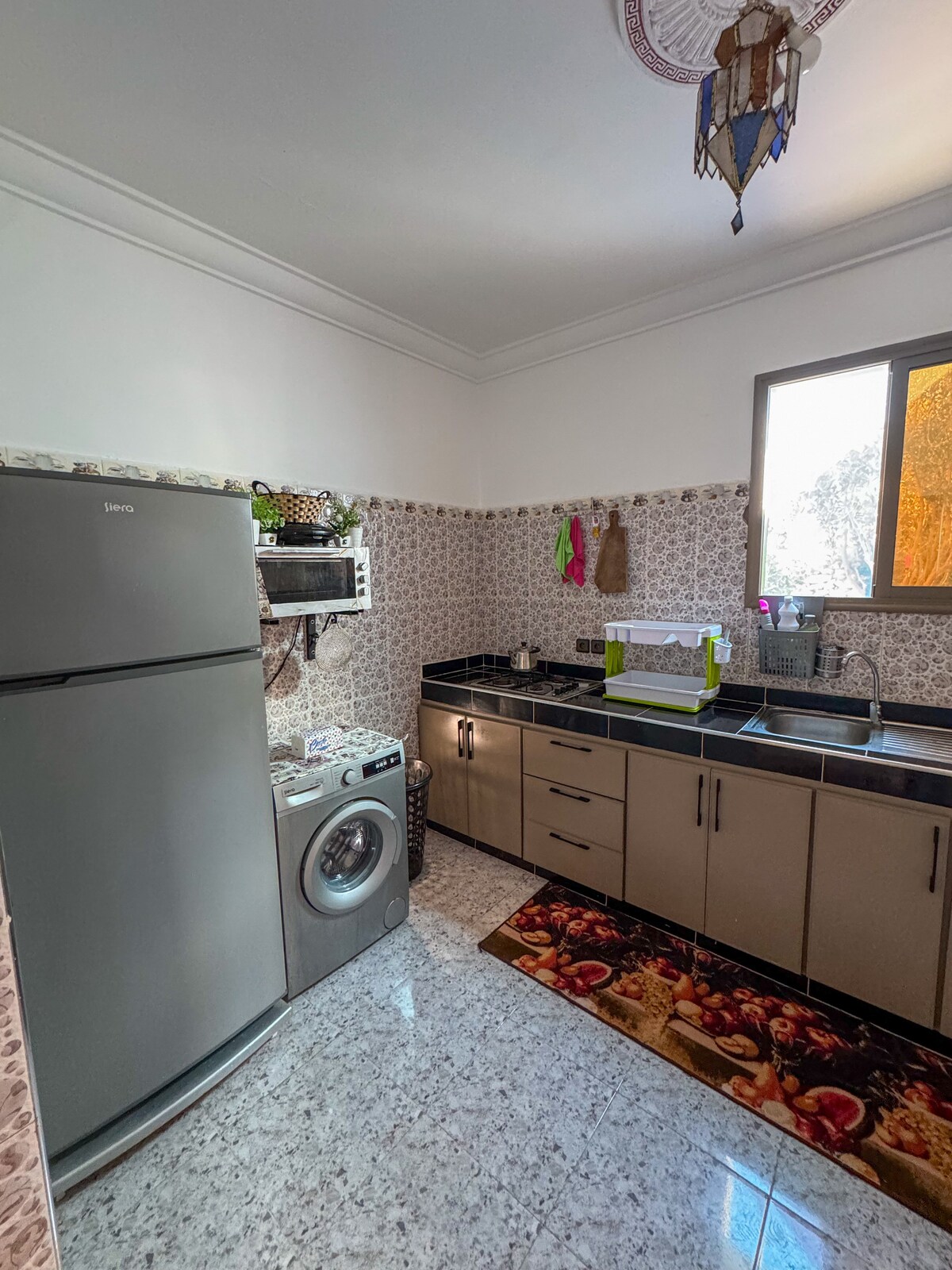 welcome to our villa located 14 km from the beautiful city of Essaouira and sidi kawki we will be happy to host you in this very quiet private house 20 minutes from Essaouira by car the house contains 2 bedrooms with double beds and a living room with 5 sofas a kitchen equipped with washing machine, very quiet area ideal to enjoy the sun and the pool.