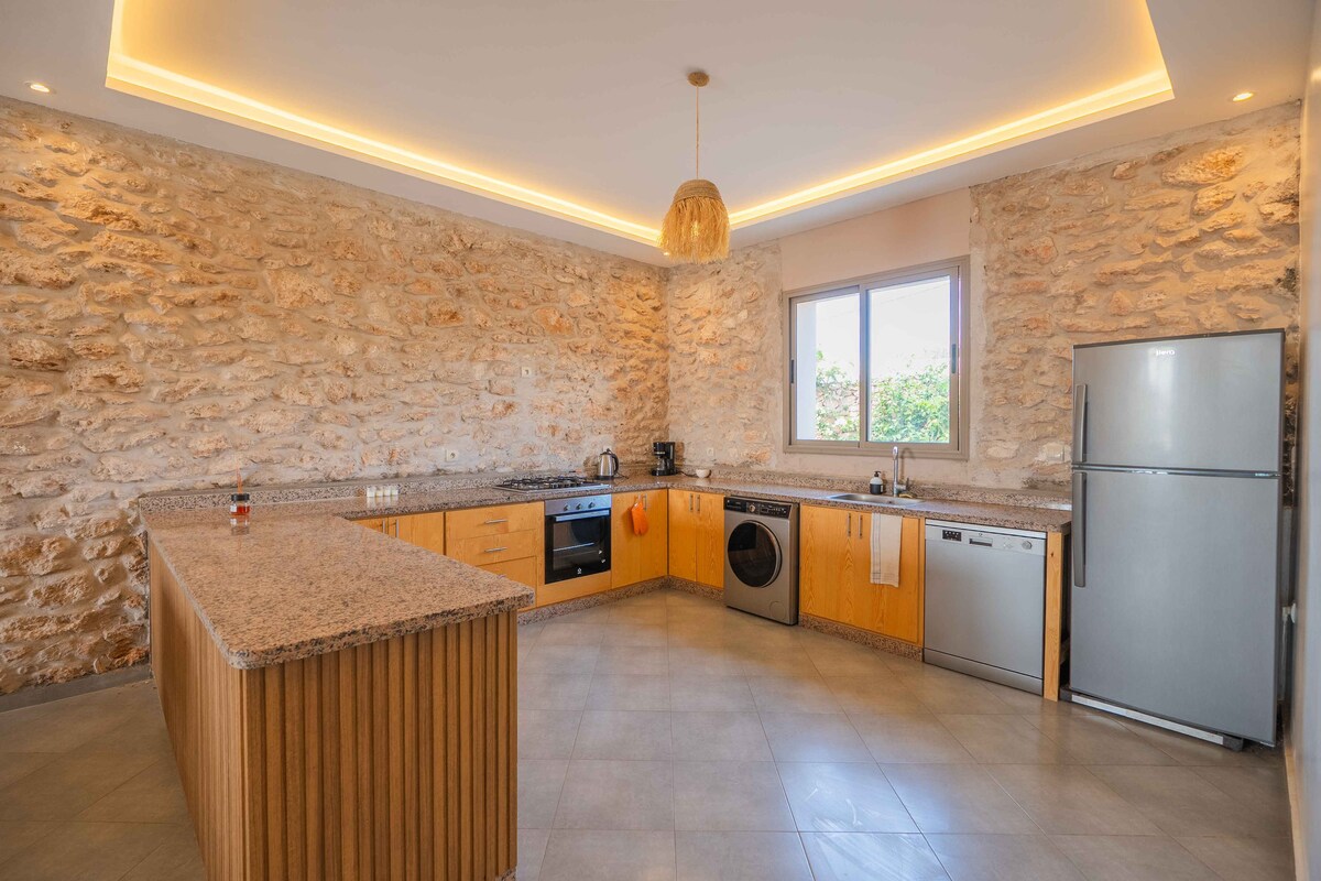 This modern Kasbah in the heart of Essaouira countryside enjoys stunning panoramic views Located just a few kilometers from Essaouira, a 10-minute drive from the city, this stone villa is an attractive retreat to spend holidays with friends or family The architecture of the house is modeled on that of the Moroccan kasbah with interiors designed and decorated in a very contemporary way, while incorporating local materials and traditional objects