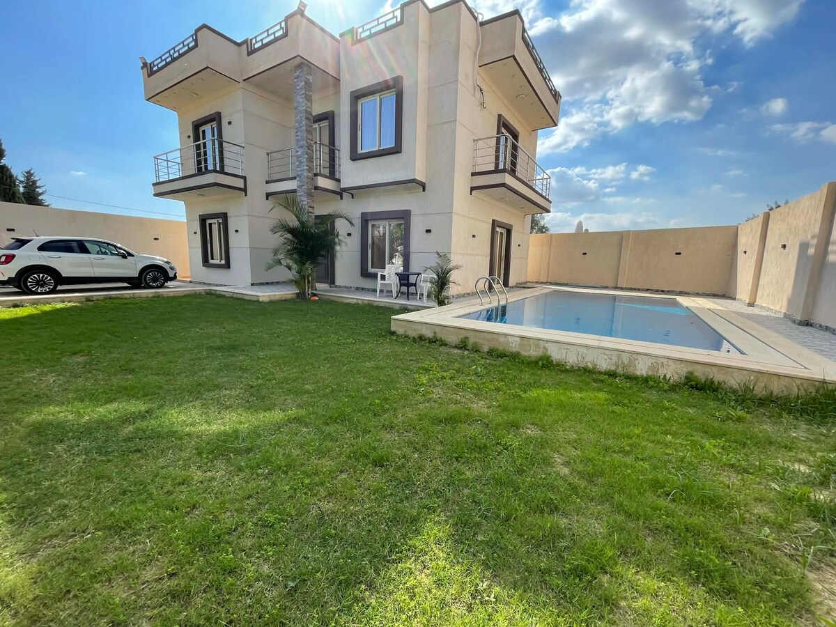 Escape to this stylish 4-bedroom villa - the perfect getaway for families and friends. Enjoy total comfort, privacy, and relaxation in the heart of King Mariout. You’ll be just 30 minutes from Alexandria, 10 minutes from Borg El Arab International Airport, and 10 minutes from the beach - close to everything, yet peaceful and private. Spacious rooms, cozy common areas, and a serene outdoor vibe make this villa ideal for unwinding, reconnecting, and creating unforgettable memories.