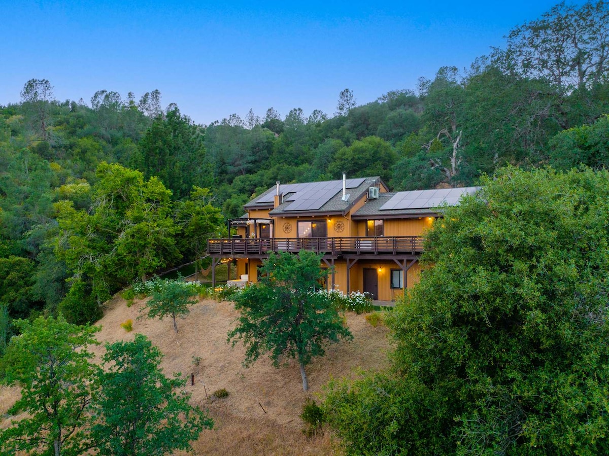 Modern Sequoia Retreat with Pool & Deck Escape to 1.5 acres of privacy with stunning High Sierra views. Step inside this stylish home featuring Mid-Century Modern furniture, custom redwood finishes, and a claw-foot tub. Cook in fully equipped kitchen or grill outdoors, enjoy comfortable beds, and unwind in total comfort. Free Extras: Outdoor pool; EV Charging (Level 2, 50A); 300 sq. ft. Office Space (available with 24+ hrs notice); Wi-Fi & streaming TV (Amazon Prime, ESPN, Nick Jr. etc.)