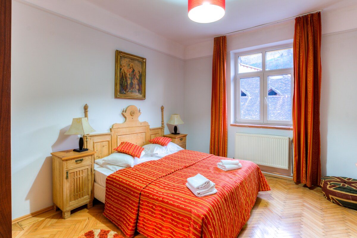 Dear guests, if you are interested in House of Dragons for the month of December please find us on Booking, as the Winter Offers aren't visible here. Cozy, comfortable place in the heart of Sighisoara! Do you wish to sleep in a true medieval apartment? We offer you the possibility and pleasure to sleep in a historical building from 1948, that is situated 3 minutes away from the famous Citadel. The view from the apartment reveals the beauty of the authentic City Hall, from 1888.