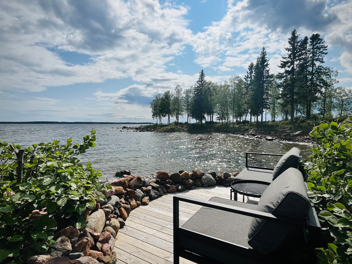 Right by the water, this is arctic nature at your doorstep. 5 mins from Luleå by car, 15 min by bus. Perfect romantic get-away, a quiet retreat/chill-out spot with Luleå's amenities just a bus/bike ride away. Sleep in a comfy bed and have a sauna by the lake! Dishwasher & washing machine, 2 km to supermarket. Trails for running and skiing right by house. Ski/skate/bike/kayak rental. In winter see the northern lights over the frozen lake, the location and view is stunning. Wifi 500/500. Welcome!