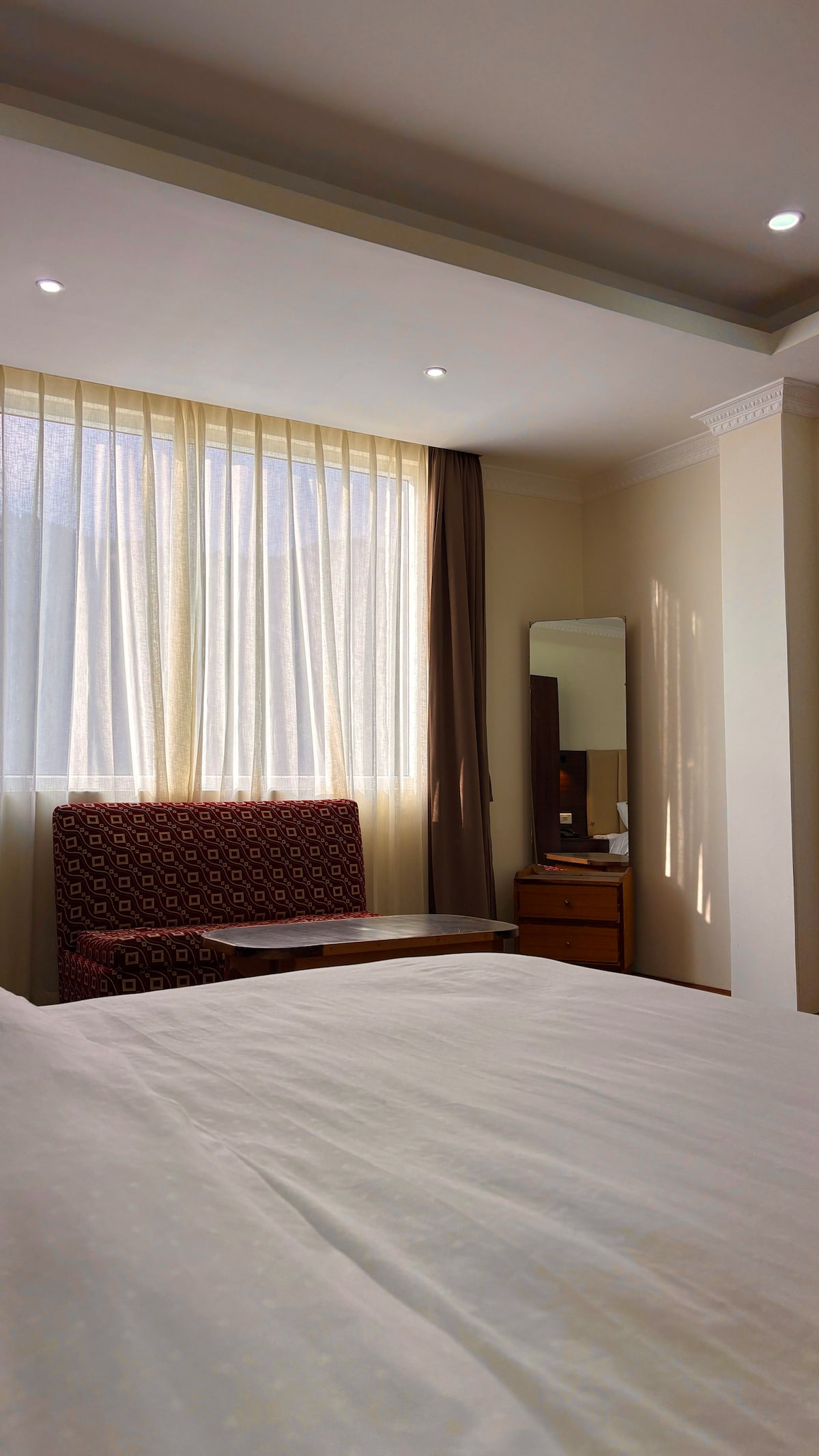 A spacious 3 BHK Serviced Apartment located in the centre of Gangtok town (200m from Mg Marg) showcasing a panoramic view of Gangtok. The property has a breath taking view of Mt. Kanchenjunga and Ranka valley. A mix of traditional & contemporary interior gives you a clam, homely and cozy vibe. Although it is located just 200m from the heart of town, the property is situated on the top 5th floor of the building. Therefore, the guests are required to walk up a bit from the main road.