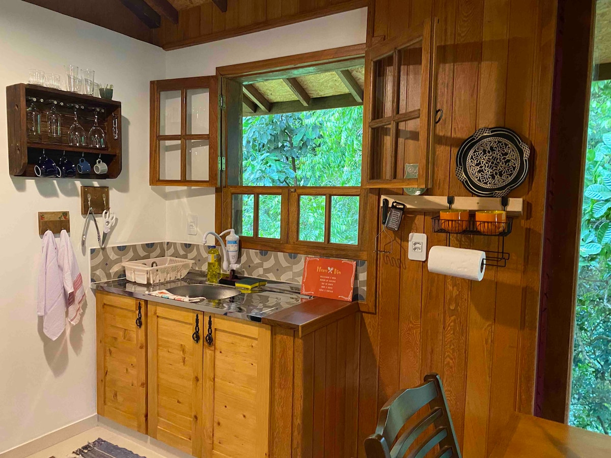 Charming and cozy cottage located in a quiet area with a lot of nature. Chalé Jardim is Tranquility's, the ideal choice for those who want to rest, feel the peace that nature transmits, hear the sound of birds and smell the forest, located 2.5 km from the Lumiar square, 700 meters of dirt road, you can rest and also enjoy all the tourist options that charming Lumiar and São Pedro da Serra offer, as it is in a village between the two cities called Benfica