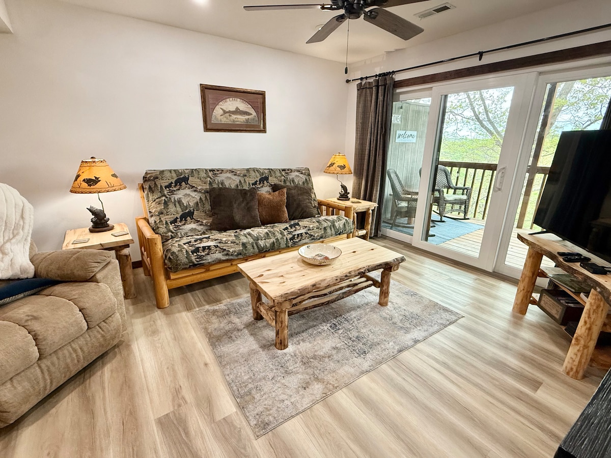 A cheerful, stair-free 2BR/2BA that blends comfort and charm with pops of personality. Relax on the spacious private deck, or head out to enjoy the pool & hot tub (seasonal - typically open Memorial Day through Labor Day - please ask for exact dates), nature trails, and Silver Dollar City. Fully stocked kitchen, comfy living area, and all the thoughtful touches that make this a cozy, convenient home base for your Branson getaway.