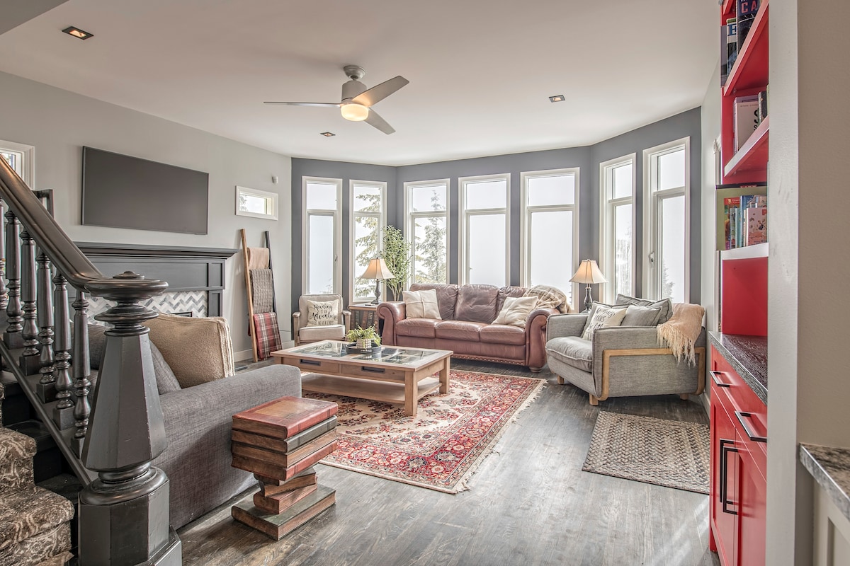 Bookend Mountain Resort Whole Home - Enjoy one of the largest homes on The Knoll. This authentic renovated chalet sleeps 20 that includes a fully equipped suite accessible via an internal staircase. Two kitchens, two livings rooms, two hot tubs and a sauna. Free wi-fi, Free parking, Free cable, Keyless entry Weekly & Mid-Week specials and Last Minute Rates Promotions, Specials and Discounts do not apply to the peak Festive Holiday Season and Family Day Weekend