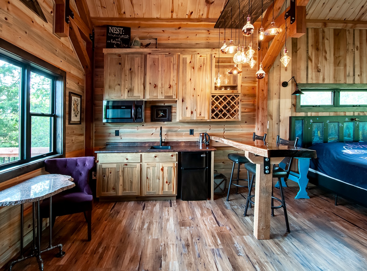 Discover the simple beauty and tranquility of Living Tiny while surrounded by soft, green hills. Sip a cup of coffee while gazing at greenery from the living room or back deck. Lounge in a hammock, meditate or write, explore the 80-acre property, or relax on the back deck by the outdoor fire pit. Enjoy a breath-taking view of the stars from the outdoor hot tub. Come in after enjoying nature and relax with a glass of wine in an elegant, modern tiny house. A perfect, peaceful get-away.
