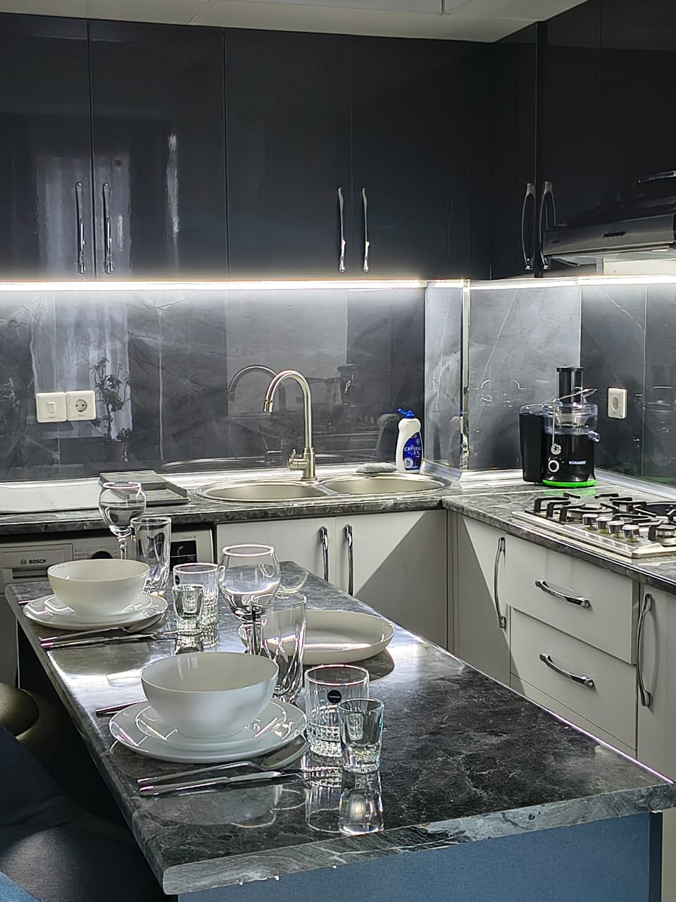 An elite apartment by the sea in a prestigious area of Baku. Enjoy a beautiful view from the balcony or relax in the cozy living room. There are many restaurants, cafes, shops and entertainment near the house. The apartment is equipped with everything you need for a comfortable stay: a comfortable bed, a sofa bed, a TV, air conditioning, a kitchen with all the necessary utensils and appliances, a bathroom with a shower and a washing machine. Free Wi-Fi is available in the apartment, allowing you to stay connected and work remotely.
