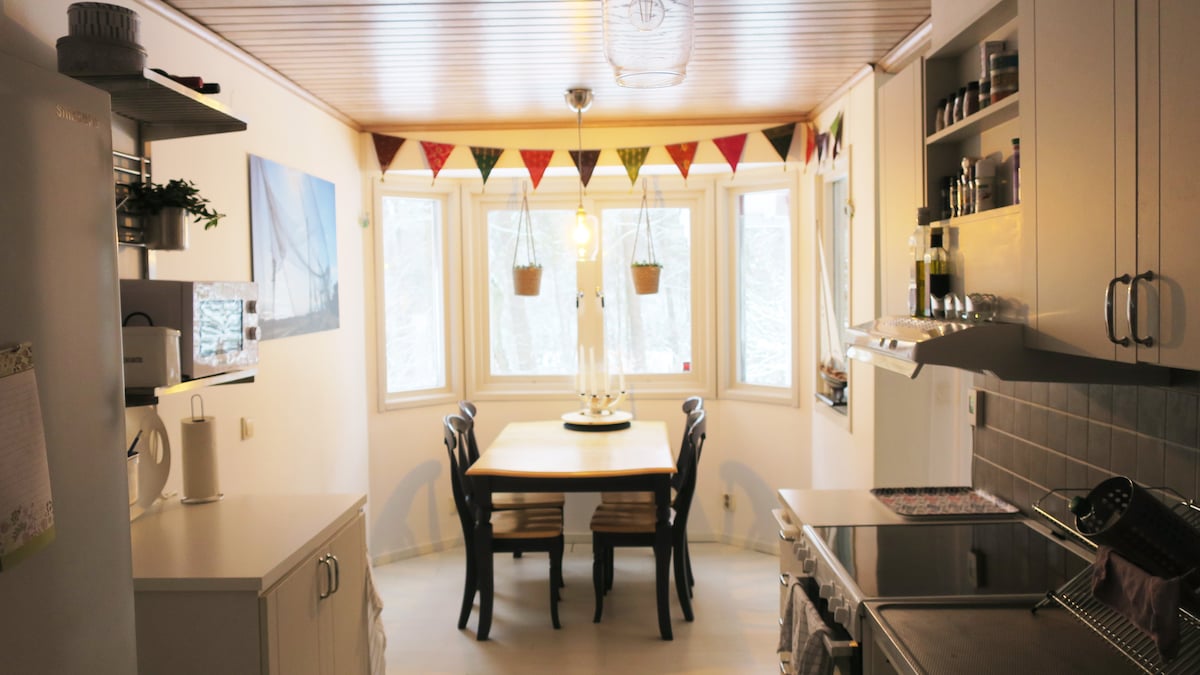 The house is 75sqm with kitchen, living room, two bedrooms, bathroom, glassed-in, insulated porch with separate study corner, located on a 1500sqm detached forest plot, with a private access road. Outside the veranda is a spacious wooden deck. The tap water tastes good and is of very good quality. A wood-burning sauna is in a separate sauna cabin. It is not allowed to smoke indoors or bring pets.