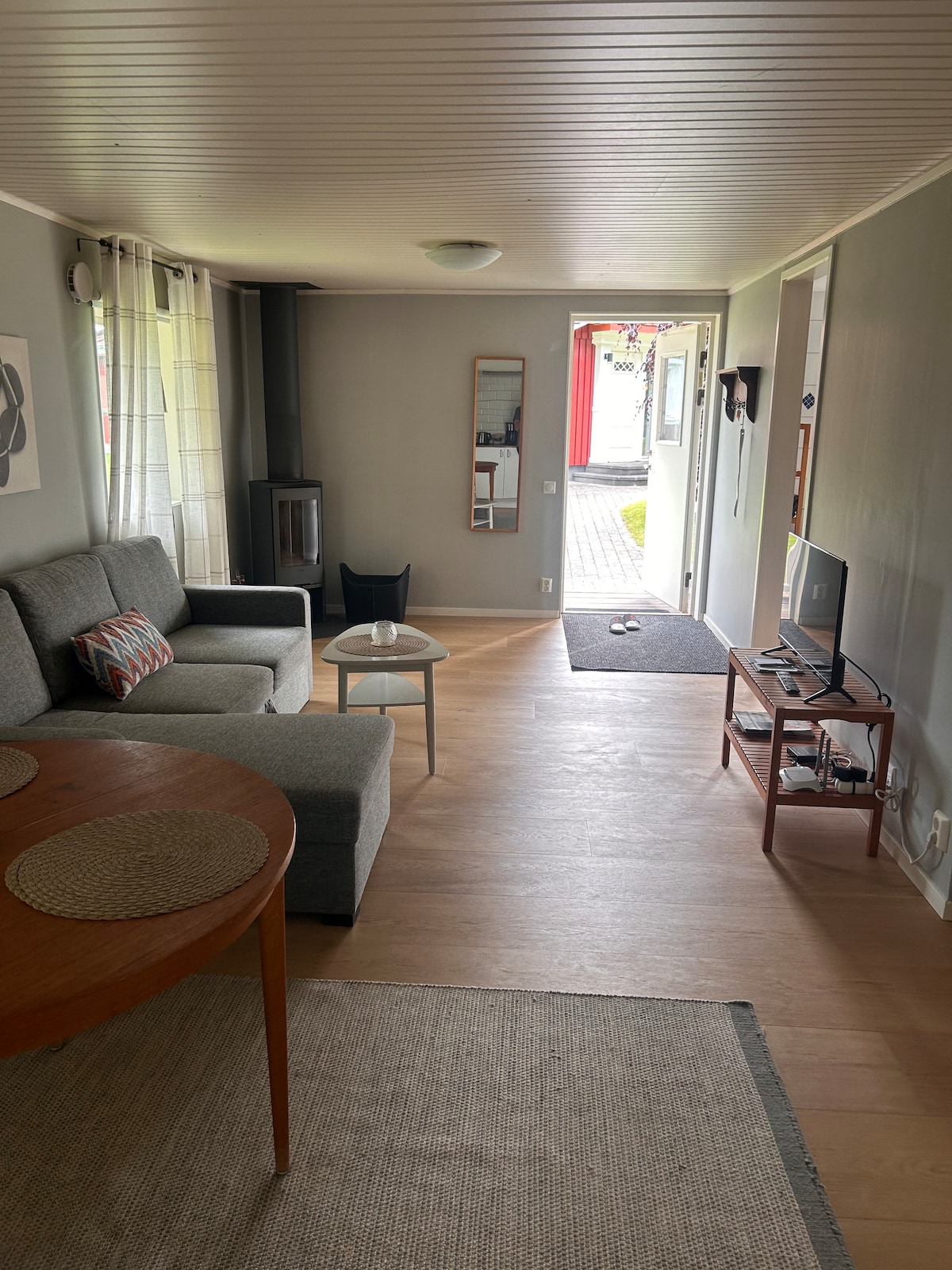 Liten stuga till 2-4semestergäster, veckopendlare, student eller liknande tidsbegränsat boende, inte lämpligt som permanent, Tex inga garderober och ingen brevlåda. 1st 120cm säng och en bredare 140cm bäddsoffa. Fullt utrustad med tvättmaskin, bastu husgeråd, möblerad osv. Wifi, ved till kamin och parkering, Allt ingår. Stugan ligger i anslutning till värdens bostad. Priset per natt gäller veckovis hyra.