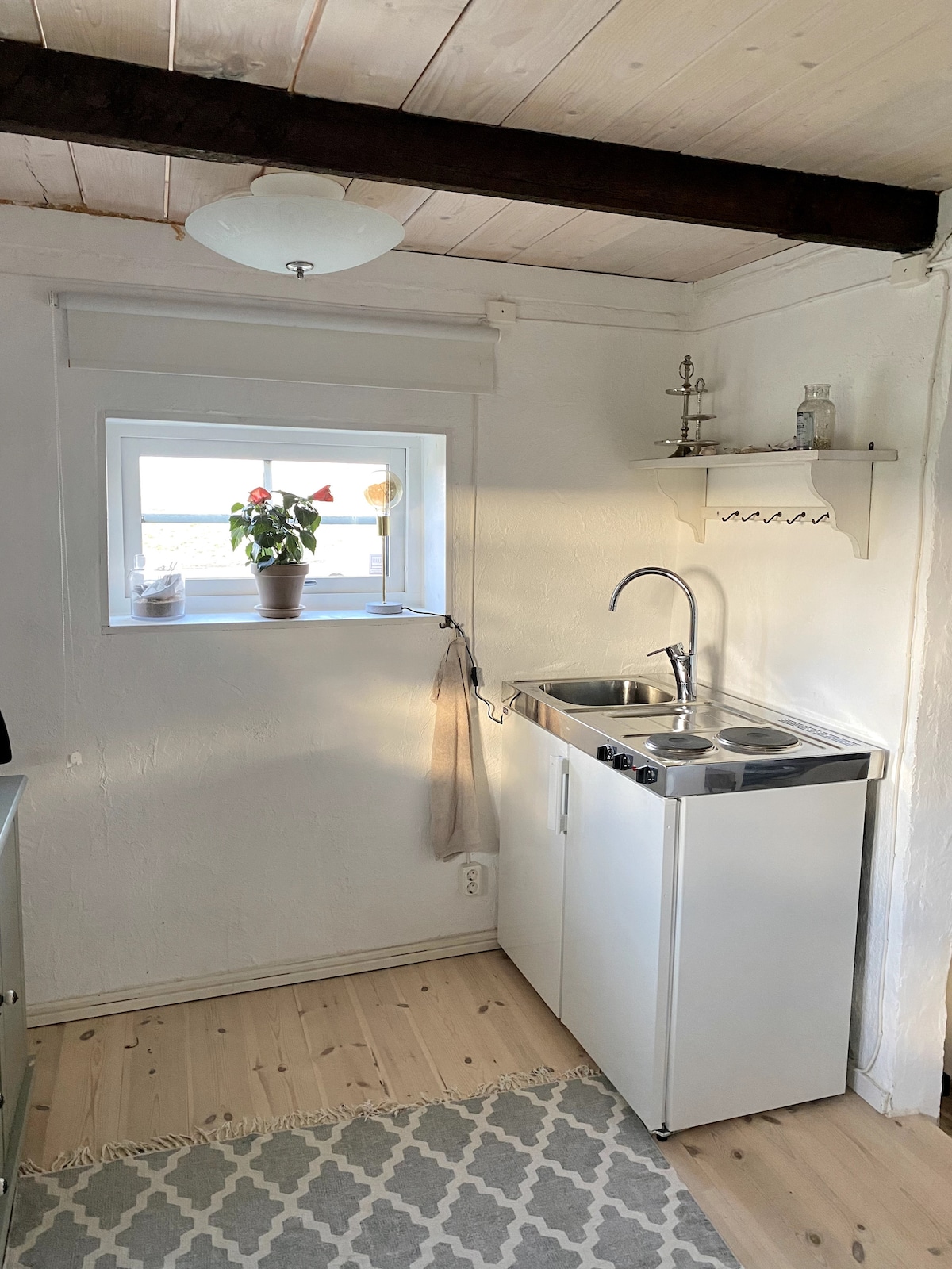 Welcome to a charming annex where rural calm meets easy access to both sea and city. You have a private entrance, a fully equipped kitchen, a cozy living room with a fireplace, a modern bathroom, and a sleeping alcove with a comfortable queen-size bed. Extra sleeping space is available. Only 8 km from a long sandy beach and 900 m from the train to Ystad, Malmö or Copenhagen—a perfect place for relaxation, romance and wonderful memories. Enjoy peaceful surroundings and warm, welcoming atmosphere.