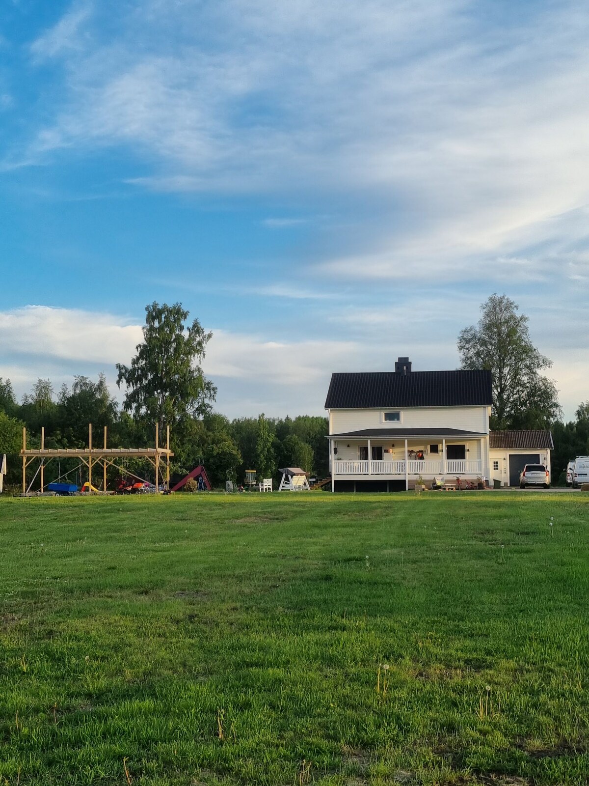 4 bedrooms, 8-10 beds, 2 km to the city center. Enjoy an active and relaxing holiday in our modern villa (built in 2017) on Vitberget in Skellefteå. Perfect for families with generous 177 sqm. Beautifully located in scenic surroundings with barbecue facilities with both charcoal grill and open fire in the yard. The whole family will love it here! Trampoline in the yard, high chairs, travel bed, swing, toys available. Activities in the area: Outdoor swimming Bike park Walking trail Padel & tennis Mini Golf