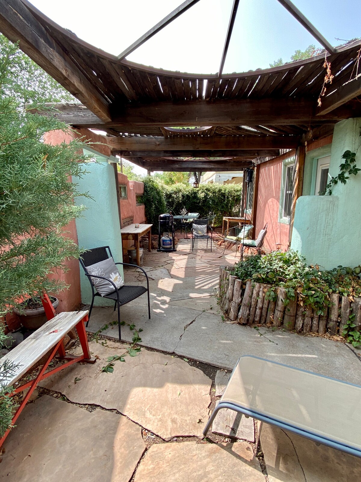 Garden Adobe Casita is a private adobe guest house two miles west of the historic plaza, near the Santa Fe River trail, Farmers Market, Railyard district and more! Built in 1949 as part of a historic farm, this one-bedroom casita offers 500 square feet of cozy living space and modern amenities. The casita is tucked in off of main roads & surrounded by a productive organic garden. Your hosts are happy to share fresh fruits and veggies with you during spring & summer months!