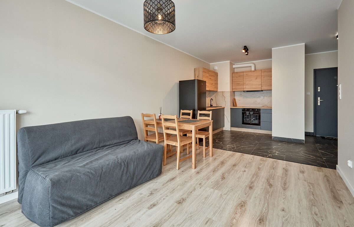 A modern apartment close to the center of Poznan, located in the Grunwald district. Perfect for people who want to enjoy the charms of the city without losing the home atmosphere. The proximity of the beautiful green complex of the Marceliński Forest is an undeniable advantage of the location. You can go there for a morning jog, a bike ride or a walk. The Old Market Square and other city attractions are also easily accessible by public transport - you can get there in a dozen or so minutes
