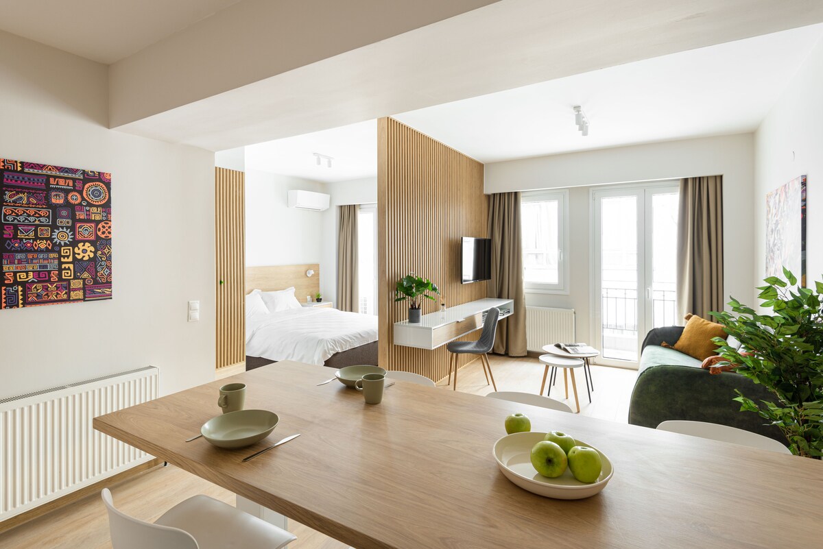 Unique 1 Bedroom fully equipped apartment on the seventh floor of a 2020 renovated building with a breathtaking terrace balcony. High speed internet, premium amenities, a luxurious queen size bed, and your very own Netflix account are but a few things we offer you. Luminous, spacious, with everything you might require to enjoy your stay in the heart of Thessaloniki's social life, only 5 minutes away from Aristotelous square and 2 minutes from the seafront. Welcome and enjoy your stay!