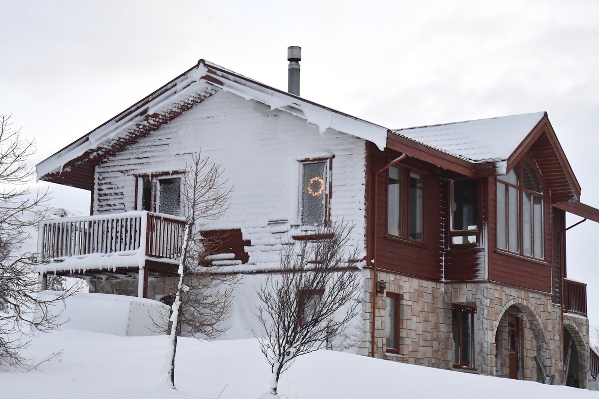 Villa with a hot tub and scenic view over Akureyri