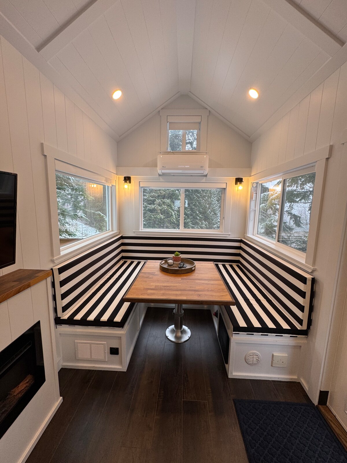 This Epic View (not so tiny) tiny house is truly a soul nourishing place. From its large expanse of south facing windows you can soak in the views of Kooteney lake and then enjoy the covered private deck with an outdoor bathtub! It has all the amenities to make a perfect retreat space including a Bose sound system, movie projector and yoga mat. From a comfy bed to artistic decor and a fully equipped kitchen, you are sure to want to stay forever.