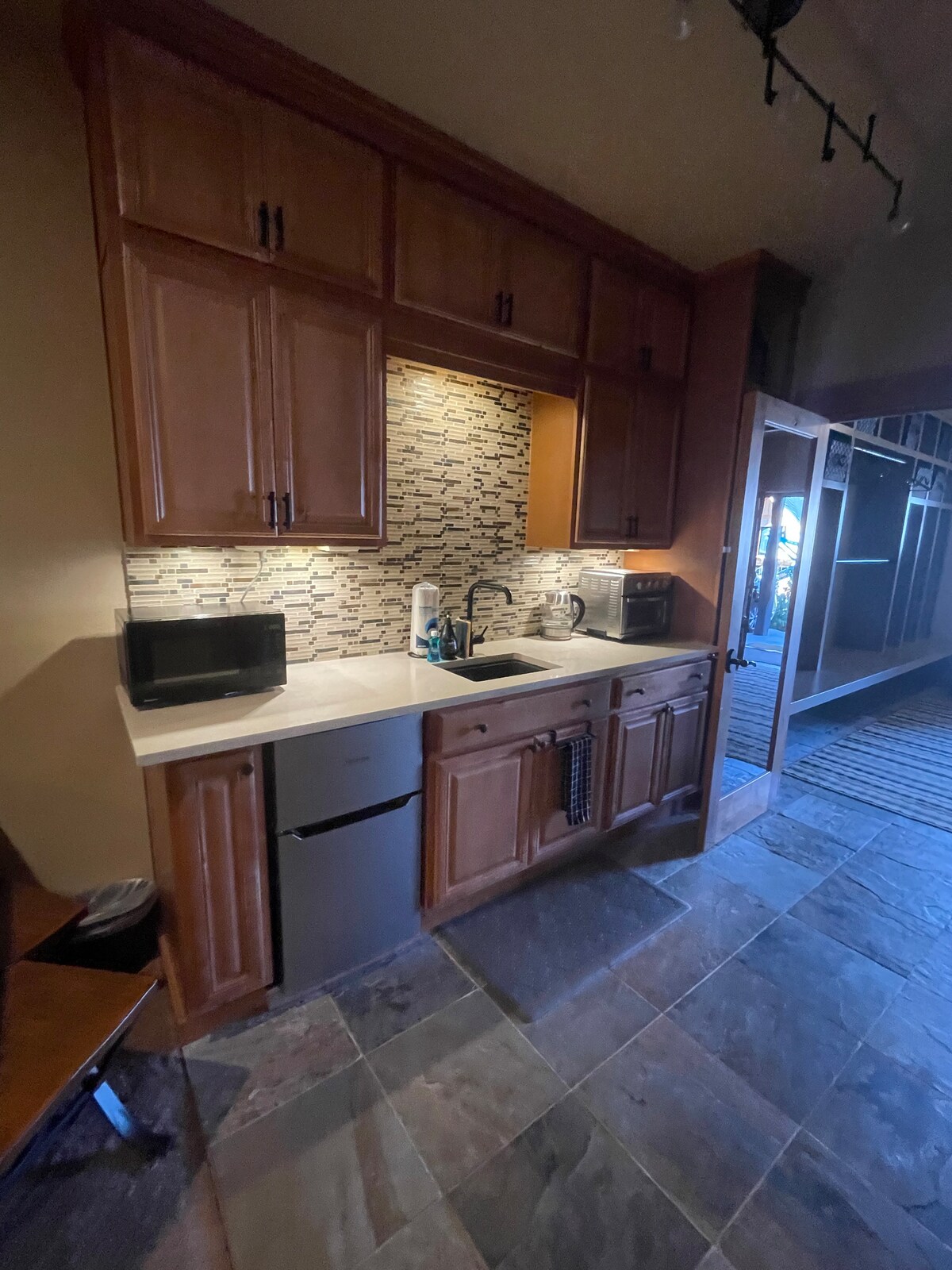 Modern carriage house apartment, located right next to the Silver Fir Ski run. This is a true ski in/ski out experience. You can watch skiers from a comfy chair by the fire since you are only about a hundred feet from the chairlift. No need to hassle with ski area parking lots or lodge food. Keep all your gear warm and dry and use the kitchen to prepare meals. Silver Fir is a great base camp with day and night skiing, and Summit West, East and Central are accessible by the chairlift.