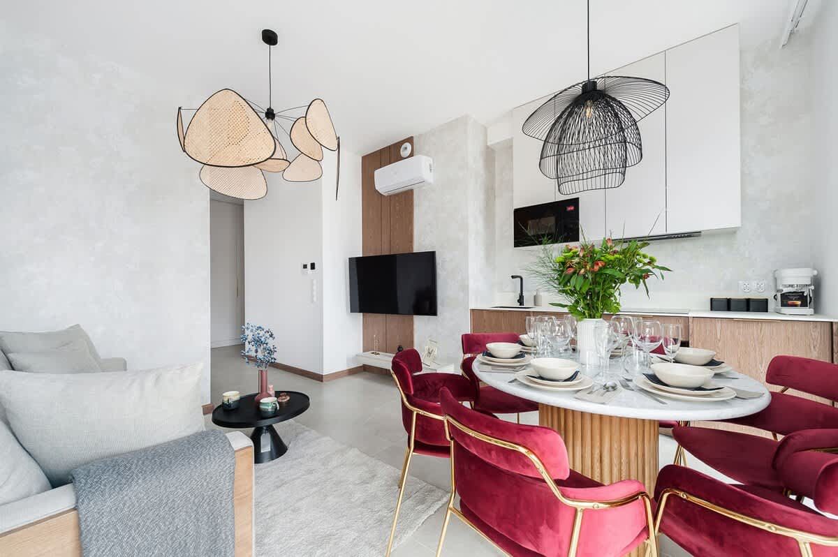 Can you combine postcard-perfect views, high-end comfort, and a proper dose of relaxation after a full day of exploring the city? Yes, you can – and you’ll find it all on the top floor of the modern building at Chmielna 63, where comfort is not just a luxury, but a necessity. This stylish penthouse is more than just a place to sleep- it's a versatile space that can cater to your unique needs. Plus, it features a spacious private terrace with a breathtaking view of Gdańsk’s Old Town skyline.