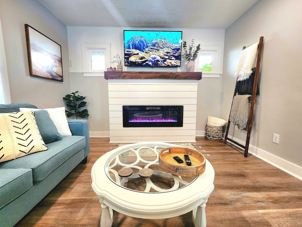 The perfect cozy treehouse oasis! Wake up surrounded by greenery next to a cozy fire overlooking a peaceful pond. From the fireplace outside on the balcony to the beautiful octagon windows bringing in all natural light! You will be able to un-plug and truly wake up feeling like you’re in paradise. Come, relax, unplug, and reset!