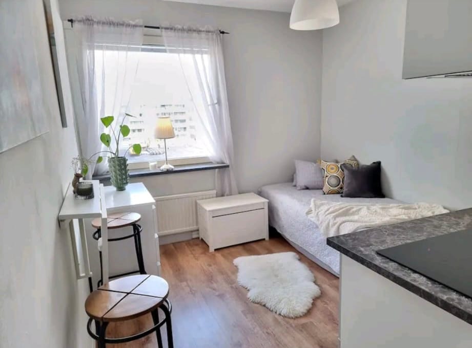 Newly built & furnished 30 sqm studio apartment with private entrance from a lovely patio with afternoon & evening sun, located in a quiet, charming residential area, 4 min walk to shopping mall & Metro -10 min ride to central Stockholm. Includes free parking. Well-equipped modern kitchen & in a separate section is a wardrobe, washer, dryer, & a bathroom. Wi-Fi with fiber connection’s included. Golf course, swimming, and supermarkets, restaurants, metro red line & buses are very close by.
