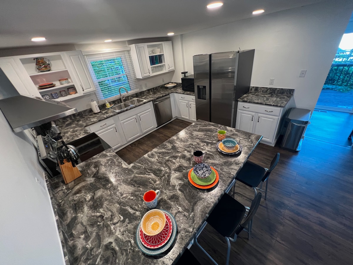 Welcome to the Butterfly Effect! Recharge at this tranquil getaway. 2.5 wooded acres with a private dock and cove, a short paddle away from the lake beach with a swimming dock and sandy beach! Fishing, swimming, and floating all on the protected freshwater lake. We have boats for your use, theater space & hot tub to wind down at night after dining on our deck. Picnic at our private Shark Tooth Beach, watch Osprey & Eagles fish the Potomac, and collect 15-million-year-old fossilized shark teeth!