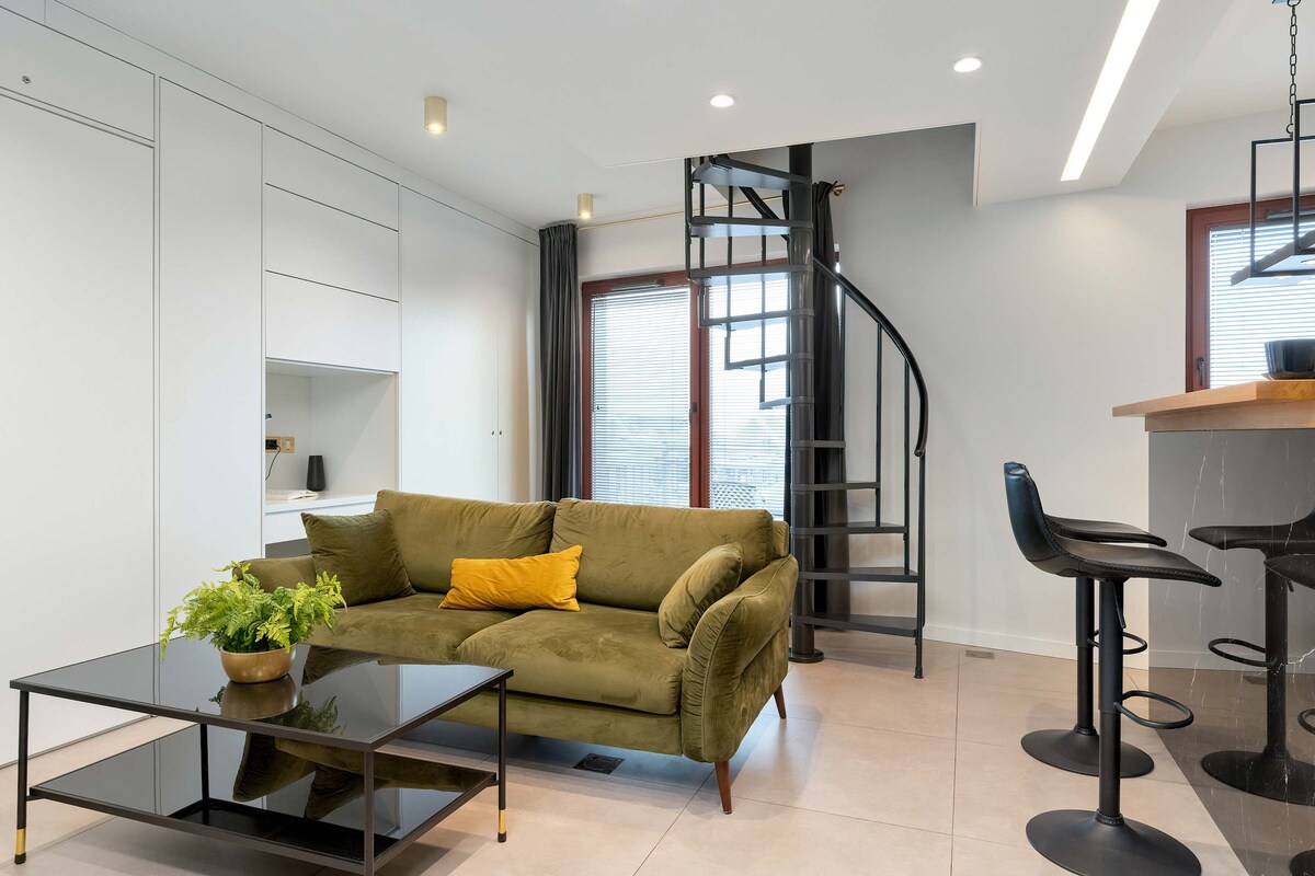 There are 2 rooms on 37.4 m2. The apartment is located on the 4th floor in a building with an elevator. Living room with kitchenette. The kitchen is fully equipped (stove, fridge, microwave, dishwasher), and there is a table. Living room with a sofa bed, BIO fireplace, bedroom with a bed and a wardrobe. Bathroom with shower and washing machine. The windows overlook the courtyard, so it is quiet. The advantage of the investment is the connection to the hotel part, where there is a restaurant, a conference room and a wellness area with a swimming pool, a jacuzzi and a gym.
