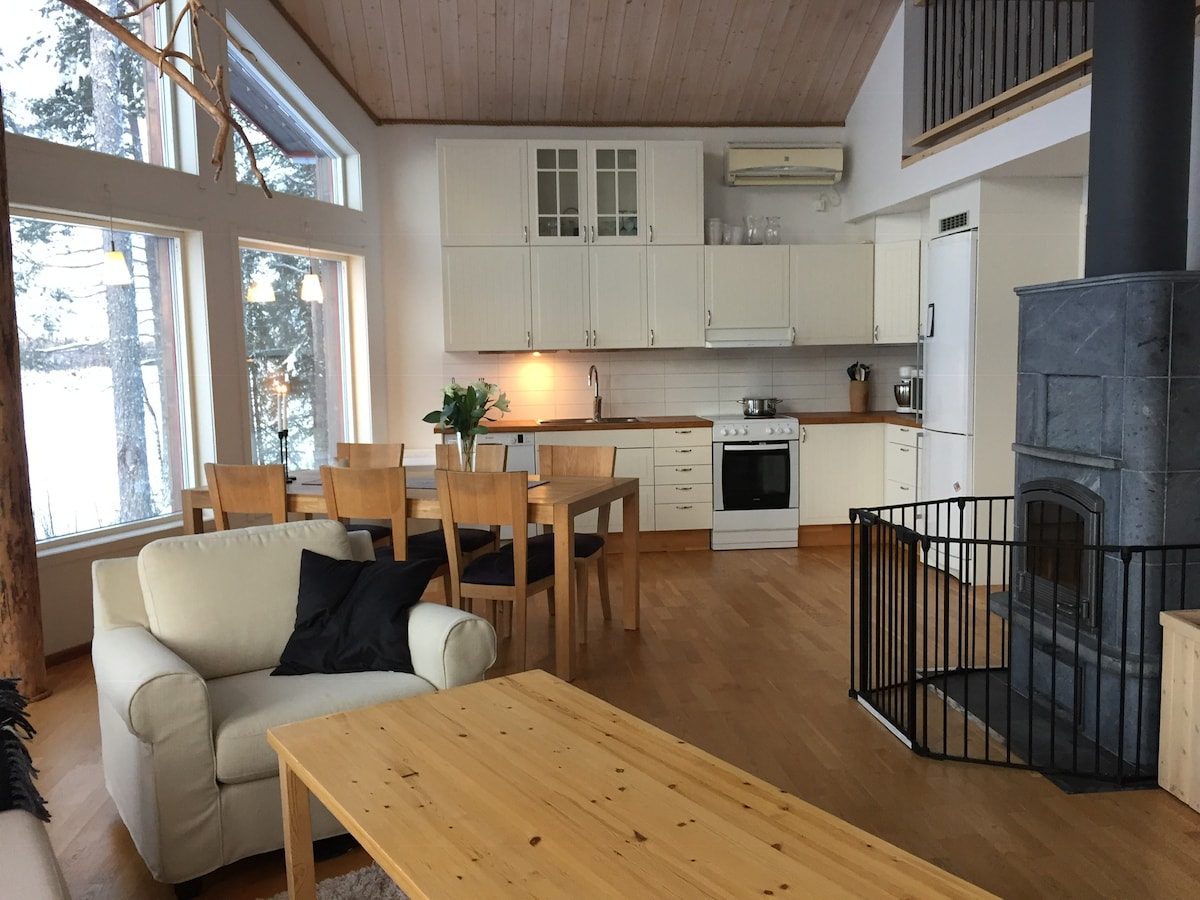 Right by the water, this is arctic nature at your doorstep. 5 mins from Luleå by car, 15 min by bus. Perfect romantic get-away, a quiet retreat/chill-out spot with Luleå's amenities just a bus/bike ride away. Sleep in a comfy bed and have a sauna by the lake! Dishwasher & washing machine, 2 km to supermarket. Trails for running and skiing right by house. Ski/skate/bike/kayak rental. In winter see the northern lights over the frozen lake, the location and view is stunning. Wifi 500/500. Welcome!