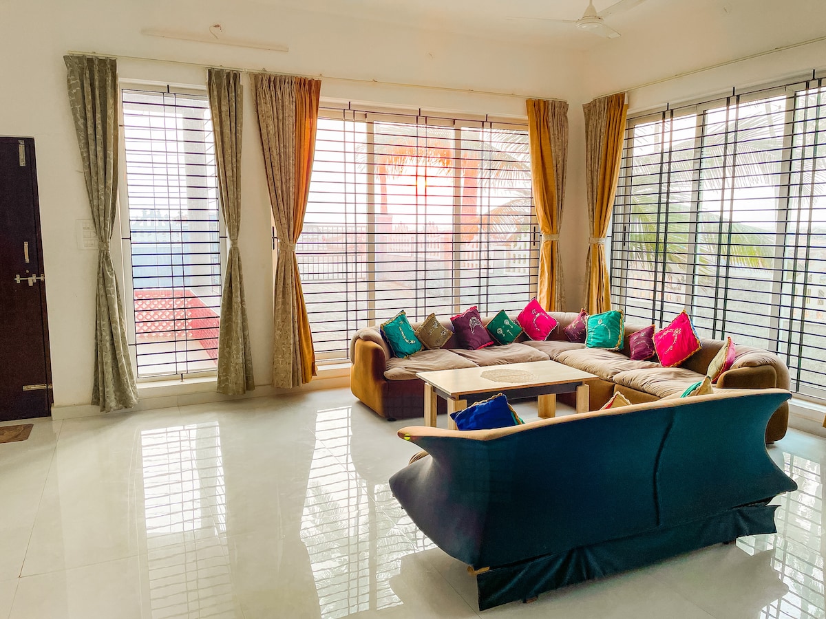 Beach facing 2 BHK villa to relax with the whole family, friends. Spend a beachfront holiday, get a sun bath in the sea. Furnished villa with a living room, private parking and in-kitchen amenities. Under CCTV Surveillance. Close by to popular Restaurants. 16km from Udupi city,6 kms from Blr-Pune highway.